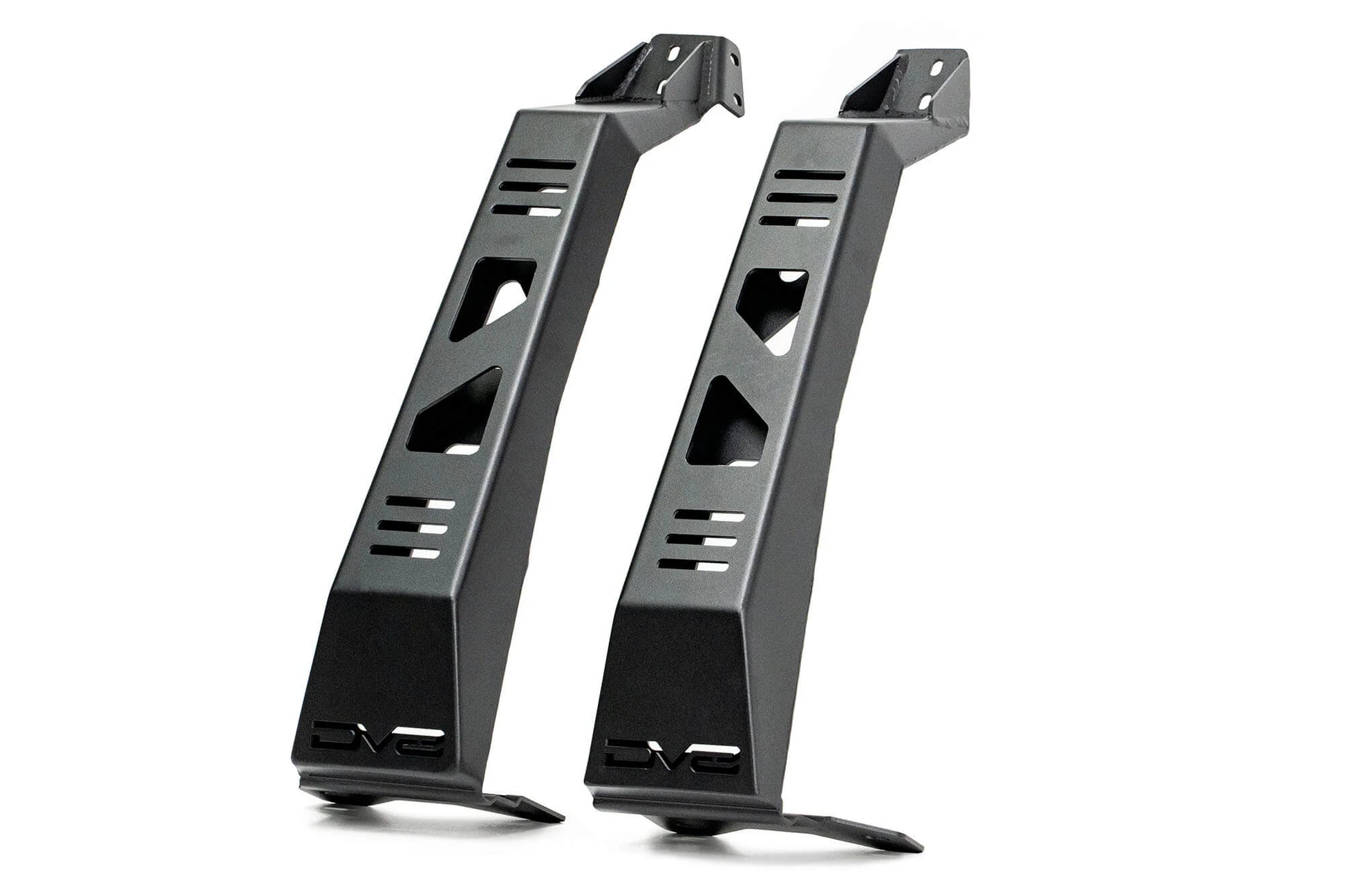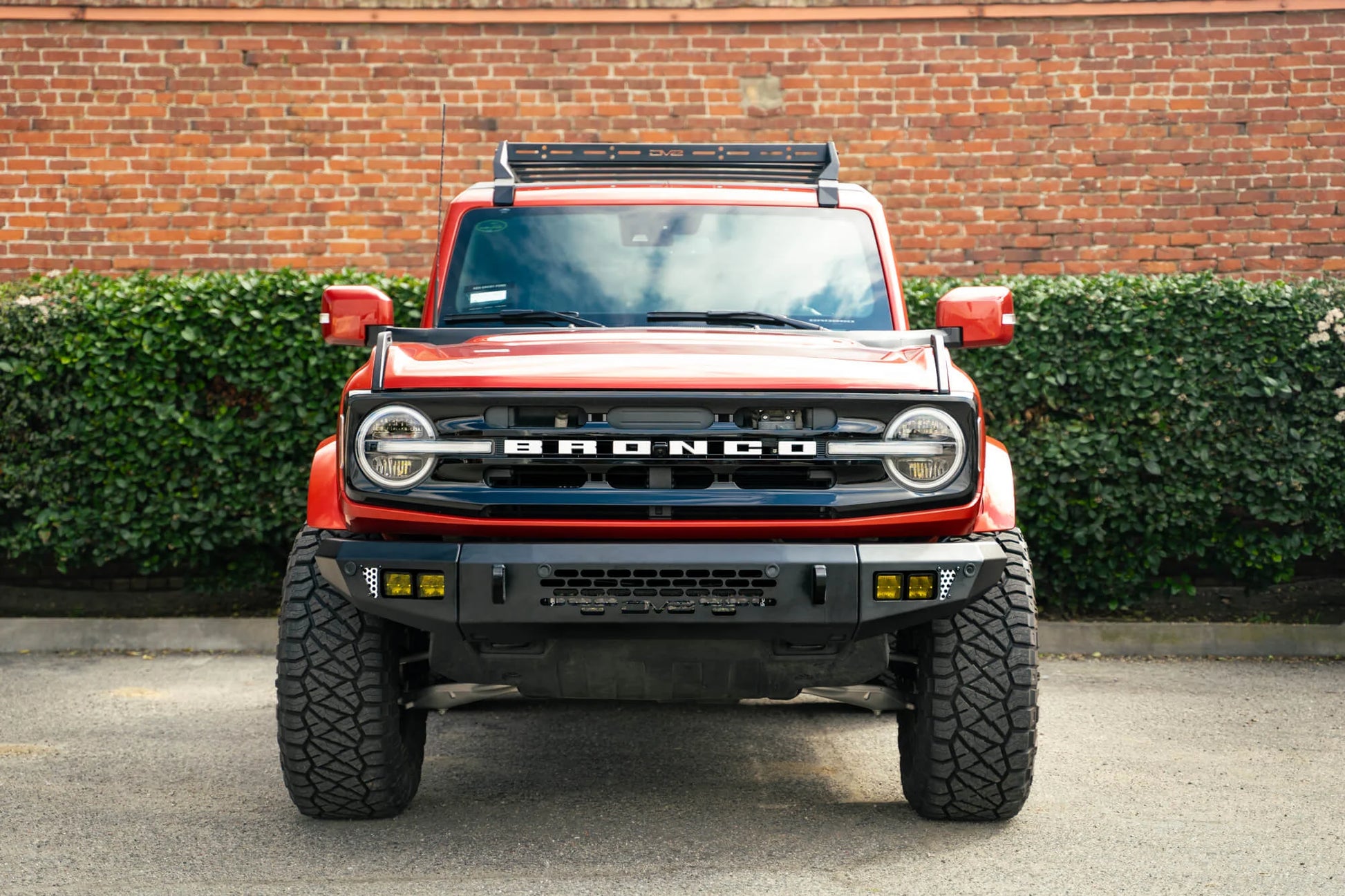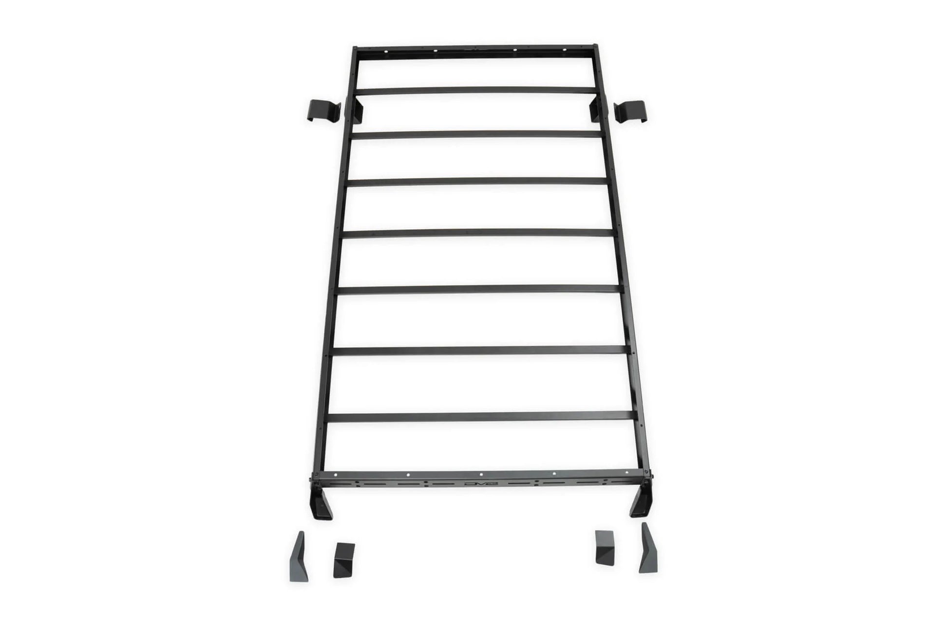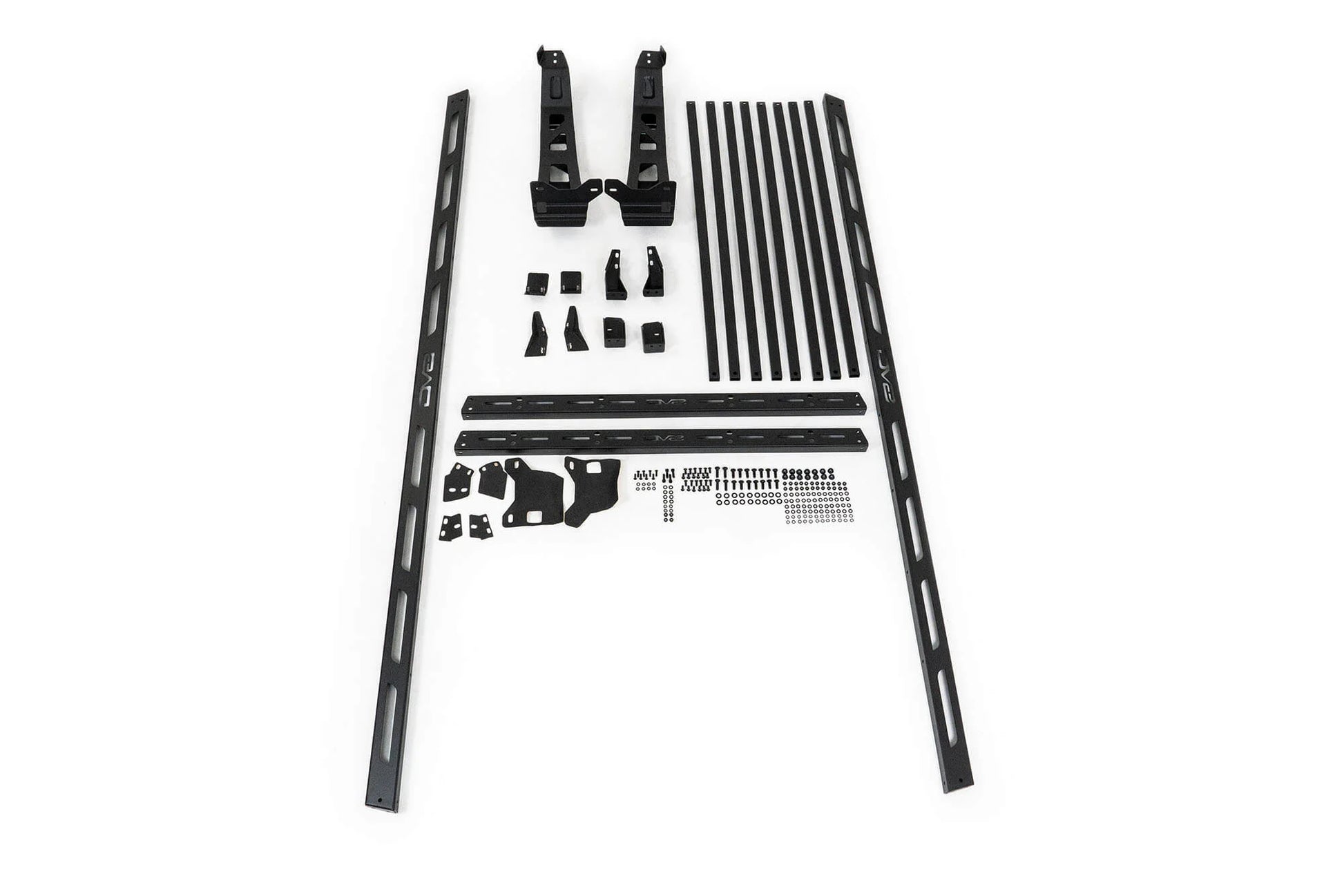 DV8 USA designed a full-size 4-Door Bronco Roof Rack for use with models featuring the OEM hard top. The cross bars feature an arced design to increase luggage & cargo capacity. There are multiple mounting points on all 4 sides for lighting options and gear such as a hi-lift jack, shovel, and more. This was specially designed to be compatible with our Curved Light Bar Mount.