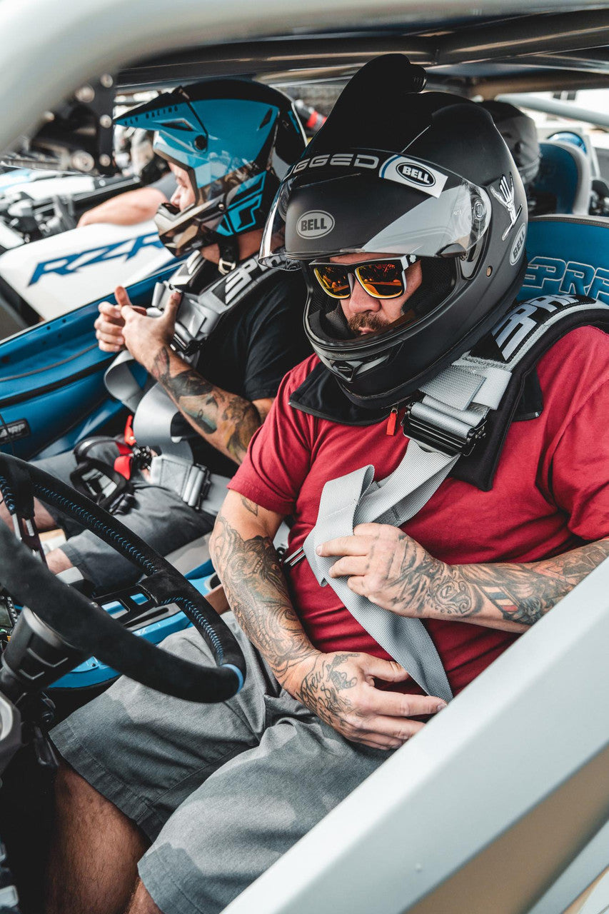 With the shoulder straps sewn to the lap belts, the 4.3 Harness makes it easy to strap in and start riding. This 4 point harness with 3" belts has sewn in pads for comfort, all black hardware for cool styling and EZ adjusters on the shoulders. The EZ adjusters allow you to adjust your shoulder straps quickly and even if they are dirty or muddy. The seat belt also has a removable sternum strap, and a red latch guard on the lap belt. The lap belt bolts in. The shoulder harness and crotch strap can either bolt down or wrap around a roll bar. Warning: Proper installation and consistent use of restraint system is critical to your safety in event of accident. Follow included installation insturctions closesly.Share